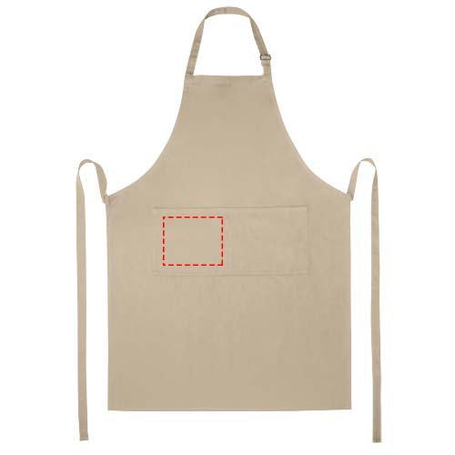Mit der Schürze Andrea ist es einfach, schöne Kleidung beim Kochen zu schützen. Die Schürze besteht aus 240 g/m² Twill (65 % Polyester und 35 % Baumwolle), wodurch sie robust und strapazierfähig, aber dennoch weich und angenehm zu tragen ist. In den beiden Fronttaschen lassen sich Küchenutensilien schnell und einfach verstauen. Die Schürze ist mit einer Schnalle im Nacken und einem Schnürverschluss auf dem Rücken verstellbar, sodass sie für alle Größen geeignet ist. Verschiedene großformatige Druckoptionen für maximale Logopräsentation.