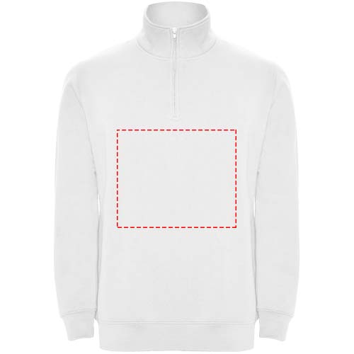 Sweatshirt mit passendem halben Reißverschluss und Polokragen. Passender Innenkragen. Verstärkte, abgedeckte Nähte am Innenkragen. 1×1 Rippbündchen an Ärmeln und Taille. Das Modell ist 185 cm groß und trägt Größe M.
