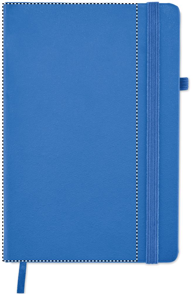 DIN A5 Notizbuch mit Hardcover aus 70% recyceltem Pre-Consumer-Leder und 30% PU-Latex. 96 Blatt (192 Seiten) liniertes Recyclingpapier. Mit farblich passendem elastischen Baumwoll Verschlussband und Stiftschlaufe.