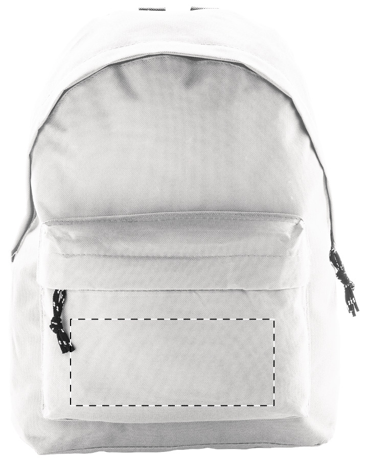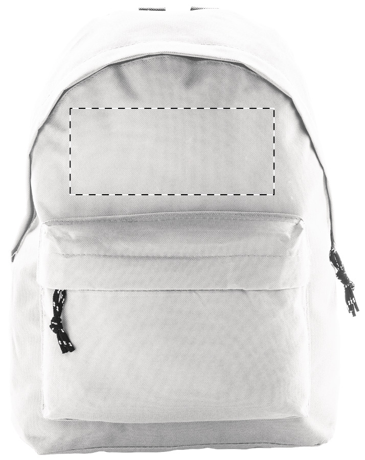 Rucksack mit Reißverschlusstasche, gepolsterter Rückenpartie und gepolsterten Tragegurten. Material: 600D Polyester.