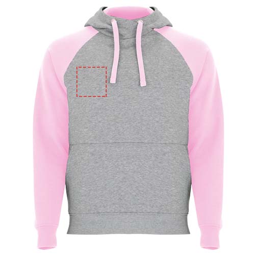 Zweifarbiger Unisex Kapuzenpulli. Kapuze mit gekreuztem Kragen und Metallösen. Innenkapuze, Kordelzug und Raglanärmel in Kontrastfarbe. Kängurutasche. Bündchen und Saum aus elastischem 1×1-Rippstrick. Abnehmbares Etikett.