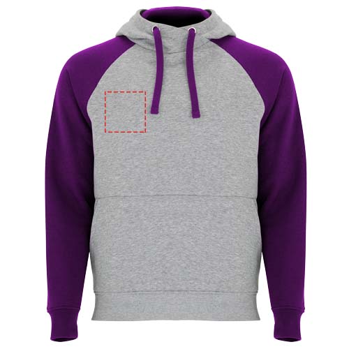 Zweifarbiger Unisex Kapuzenpulli. Kapuze mit gekreuztem Kragen und Metallösen. Innenkapuze, Kordelzug und Raglanärmel in Kontrastfarbe. Kängurutasche. Bündchen und Saum aus elastischem 1×1-Rippstrick. Abnehmbares Etikett.