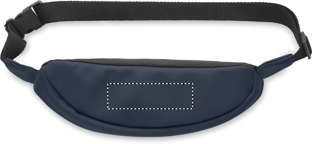 Gürteltasche aus PU-beschichtetem 600D RPET-Polyester und 210D RPET-Polyesterfutter. Fronttasche mit Reißverschluss.