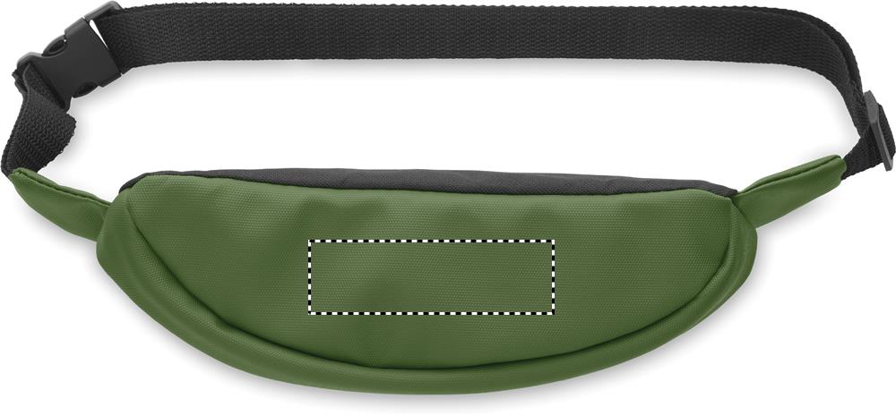 Gürteltasche aus PU-beschichtetem 600D RPET-Polyester und 210D RPET-Polyesterfutter. Fronttasche mit Reißverschluss.