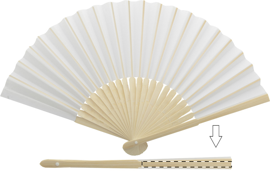 Handfächer aus Papier mit Bambusspeichen.