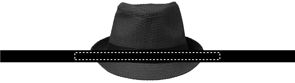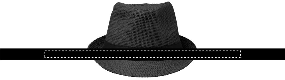Hut aus Papierstroh mit schwarzem Polyesterband. Bei Bestellungen ohne Werbeanbringung wird das Band lose mitgeliefert.