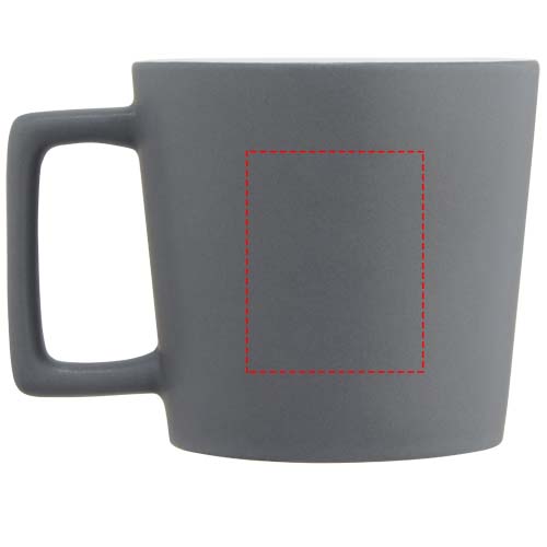 Keramiktasse mit modernem Design und matter Oberfläche. Das Fassungsvermögen beträgt 370 ml. Spülmaschinenfest für alle Werbeanbringungsmethoden. Verpackt in einer Geschenkbox aus Recyclingkarton.