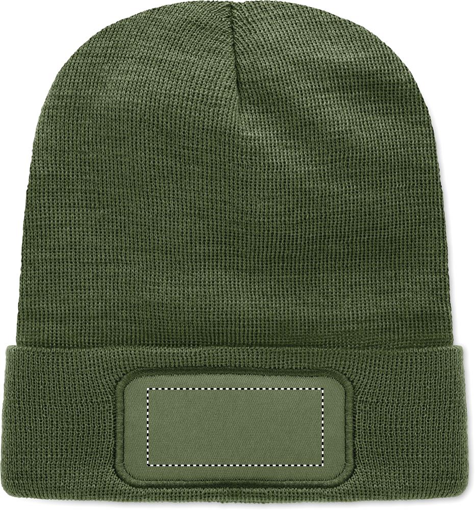 Beanie aus softem, elastischem RPET-Polyester. Mit Umschlag und Aufnäher. Unisex.