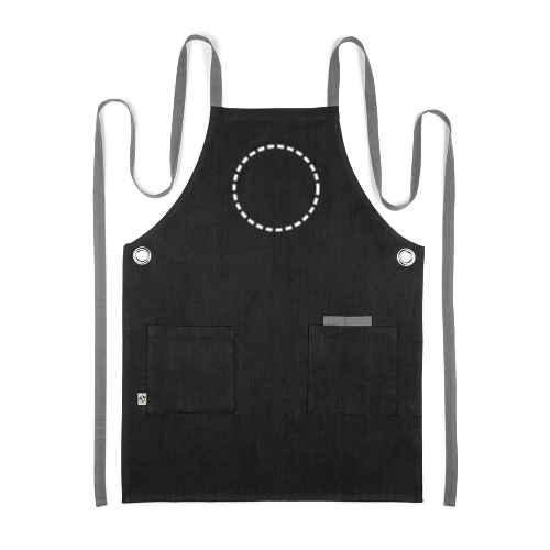 Schürze aus 80% recycelter Baumwolle und 20% recyceltem Polyester (220 g/m²). Sie verfügt über drei multifunktionale Taschen, ideal zum Verstauen eines Mobiltelefons oder eines kleinen Tablets für die Auftragsannahme. Die gekreuzten Träger am Rücken sorgen für ein auffälliges Design und ermöglichen eine bequeme, individuell anpassbare Passform. 681 x 900 mm