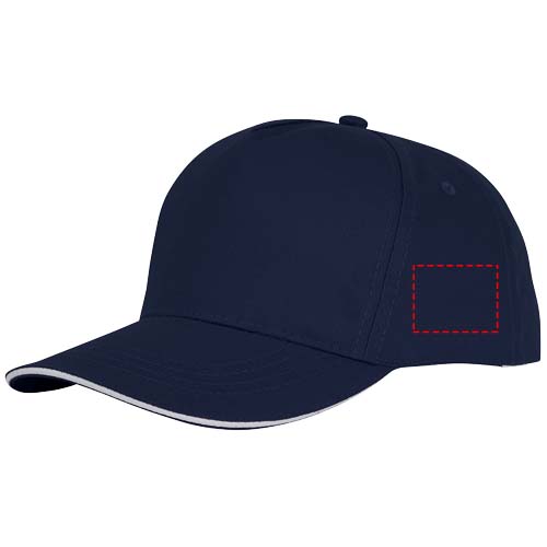 Die Ceto 5 Segmente Sandwich Mütze - Stil und Zweckmäßigkeit harmonisch vereint. Sie ist aus 175 g/m² Baumwolltwill gefertigt und bietet nicht nur Haltbarkeit, sondern auch ein weiches und atmungsaktives Tragegefühl. Mit einem vorgeformten Schirm und einem Sandwich-Design bietet die Kappe Sonnenschutz mit einem Hauch von Eleganz. Mit einem strukturierten Vorderteil und Details aus Baumwolle im Inneren bietet diese Kappe sowohl Raffinesse als auch Komfort. Mit einem Kopfumfang von 58 cm garantiert sie eine maßgeschneiderte Passform für eine Vielzahl von Kopfgrößen. Der Klettverschluss aus Stoff lässt sich mühelos verstellen und ermöglicht so eine perfekte Passform. Die Ceto Mütze ist das ideale Accessoire für jede Gelegenheit, egal ob es sich um einen lässigen Ausflug oder ein Outdoor-Abenteuer handelt.