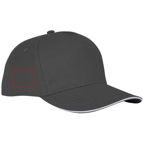Die Ceto 5 Segmente Sandwich Mütze - Stil und Zweckmäßigkeit harmonisch vereint. Sie ist aus 175 g/m² Baumwolltwill gefertigt und bietet nicht nur Haltbarkeit, sondern auch ein weiches und atmungsaktives Tragegefühl. Mit einem vorgeformten Schirm und einem Sandwich-Design bietet die Kappe Sonnenschutz mit einem Hauch von Eleganz. Mit einem strukturierten Vorderteil und Details aus Baumwolle im Inneren bietet diese Kappe sowohl Raffinesse als auch Komfort. Mit einem Kopfumfang von 58 cm garantiert sie eine maßgeschneiderte Passform für eine Vielzahl von Kopfgrößen. Der Klettverschluss aus Stoff lässt sich mühelos verstellen und ermöglicht so eine perfekte Passform. Die Ceto Mütze ist das ideale Accessoire für jede Gelegenheit, egal ob es sich um einen lässigen Ausflug oder ein Outdoor-Abenteuer handelt.