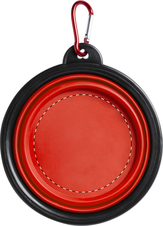 Faltbarer Hundenapf aus TPR-Material mit farblich passendem Karabinerhaken, 450 ml.