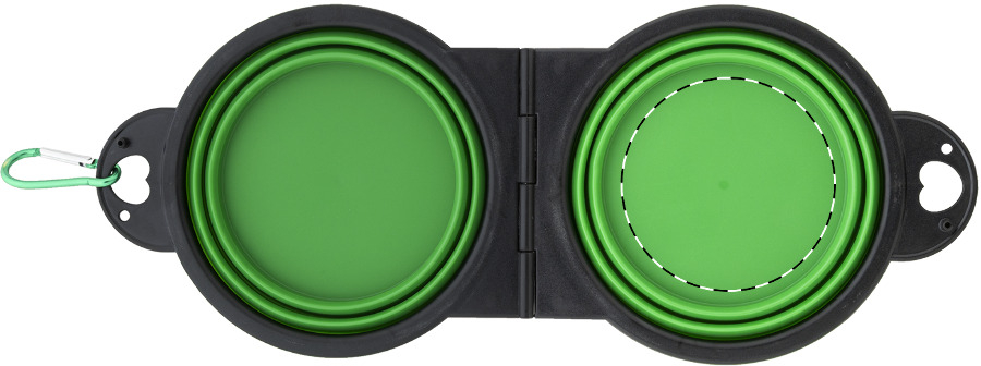 Faltbarer Hundenapf aus strapazierfähigem TPE mit zwei 450-ml-Fächern und farblich passendem Aluminiumkarabiner.