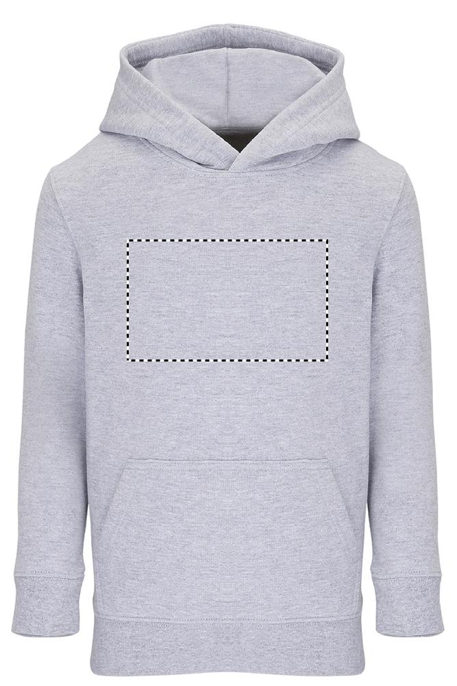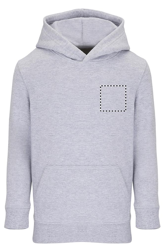 SOL'S CONDOR KIDS, Sweatshirt für Kinder 80% Baumwolle - 20 % recycelter Polyester GRS zertifiziert, eingesetzte Ärmel, Seitennähte, 1x1 Rippbündchen an Ärmeln und Saum, Kängurutasche, gefütterte Kapuze, Jersey-Halbmond und Nackenband, Relaxed Fit (1) Grau Melange : 73 % Baumwolle / 20 % recycelter Polyester / 7 % Viskose. Um Ihre passende Größe zu finden, beachten Sie bitte die Größentabelle unter Details/Size Chart.