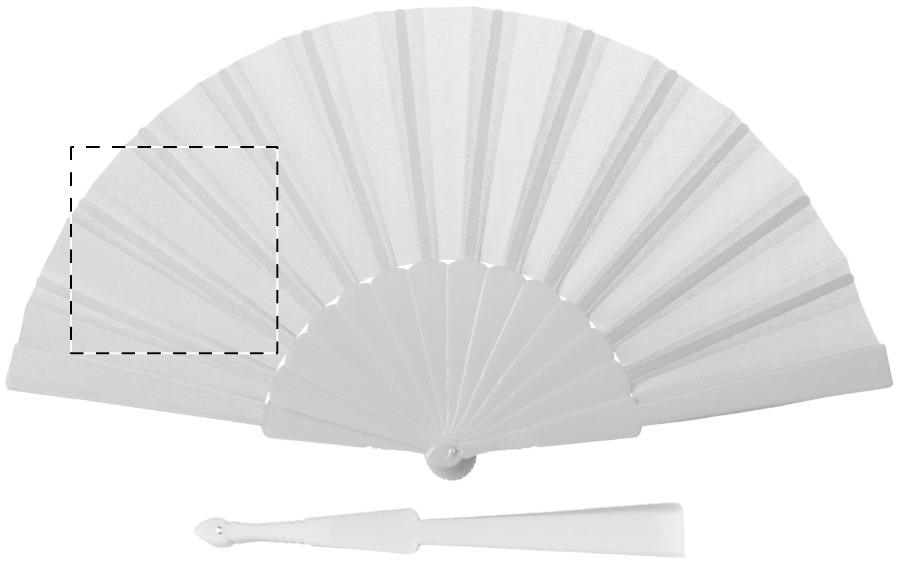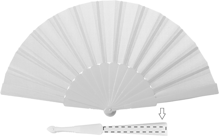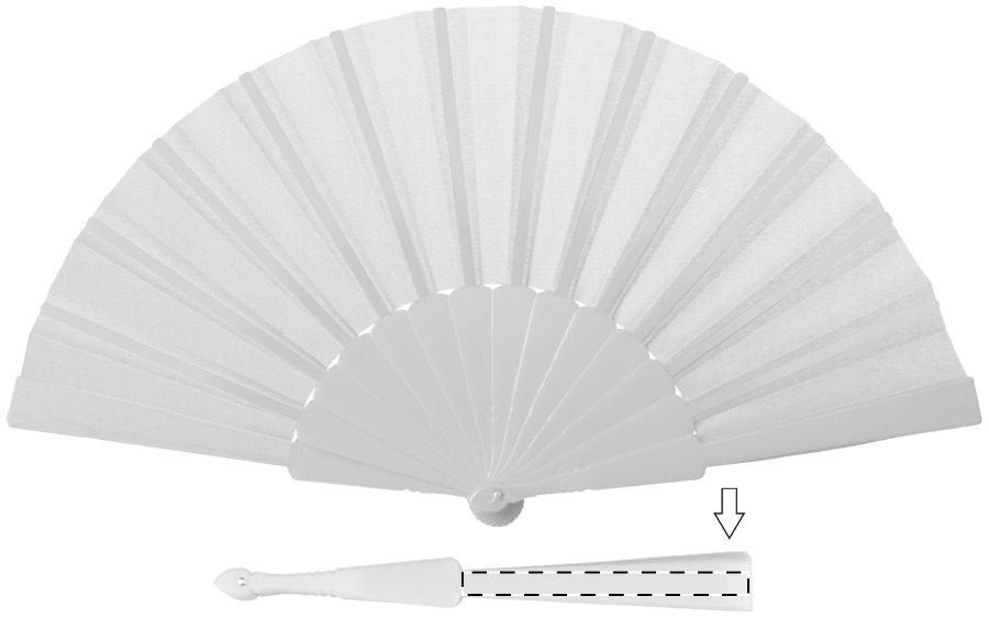 Fächer aus Stoff, Griff aus Kunststoff.