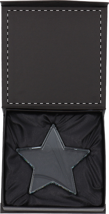 Trophäe aus Glas in Sternenform. Einzeln verpackt in schwarzer Geschenkbox.