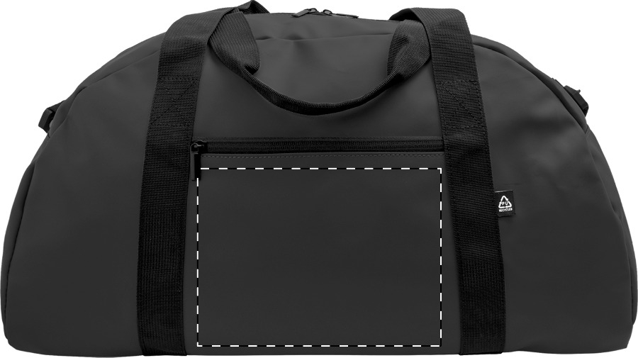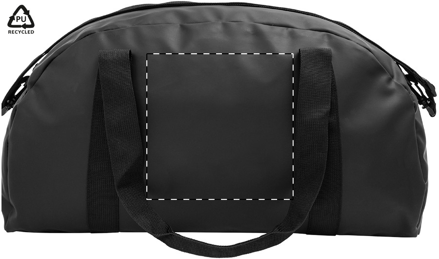 Wasserfeste, weiche Sporttasche aus recyceltem PU-Leder mit Reißverschluss-Hauptfach, Reißverschluss-Fronttasche, langem Tragegriff und verstellbarem Schultergurt. Mit Label recyceltes PU.