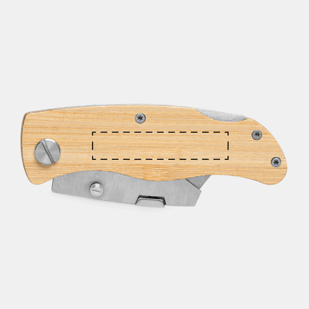 Cuttermesser ECO CUT zum Ausklappen: mit auswechselbarer Klinge, inkl. fünf Ersatzklingen, ergonomische Griffform, Bambus-Applikation am Griff, praktischer Befestigungsclip, in Box