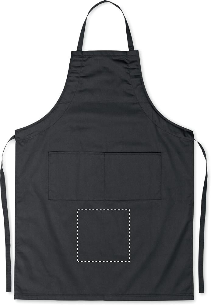 Küchenschürze mit verstellbarem Nackenband und 2 Fronttaschen. 10% Baumwolle / 90% Polyester, 190 g/m².