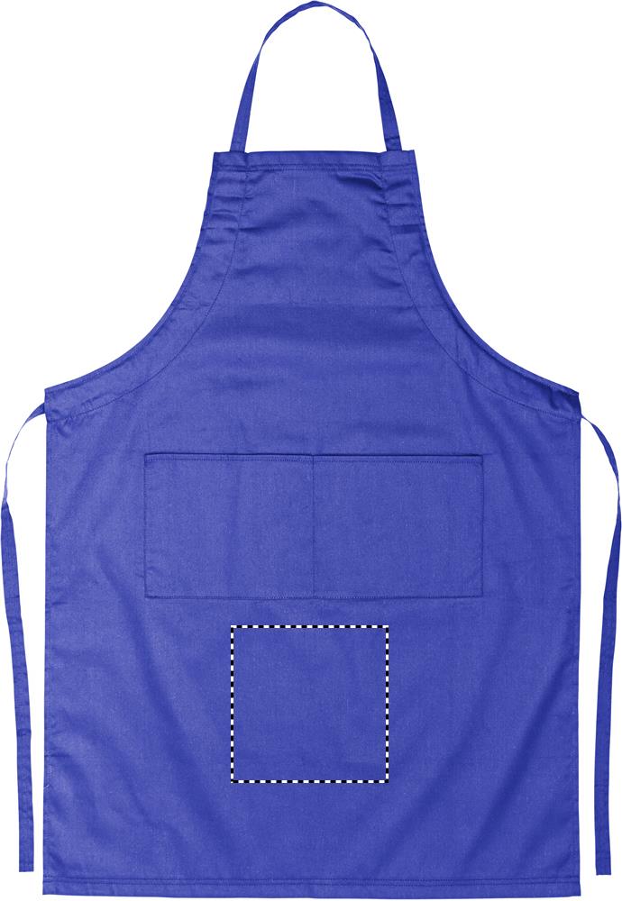 Küchenschürze mit verstellbarem Nackenband und 2 Fronttaschen. 10% Baumwolle / 90% Polyester, 190 g/m².