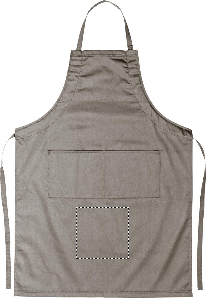 Küchenschürze mit verstellbarem Nackenband und 2 Fronttaschen. 10% Baumwolle / 90% Polyester, 190 g/m².