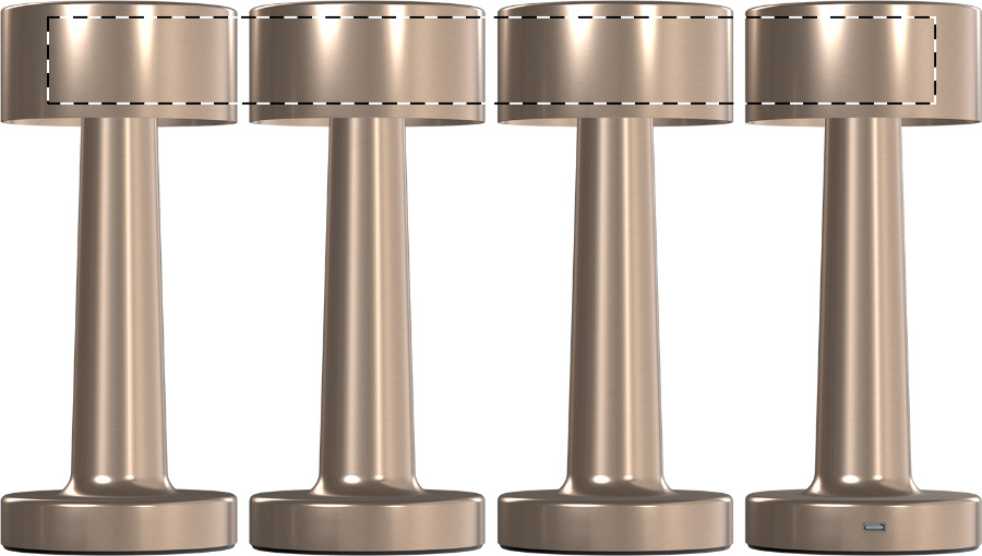 Tischleuchte aus goldfarbenem Metall mit 24 LEDs, einstellbarer Helligkeit und 800 mAh USB-Akku. Mit warmen, natürlichen und kühlen Lichtmodi. Inklusive USB-Ladekabel.