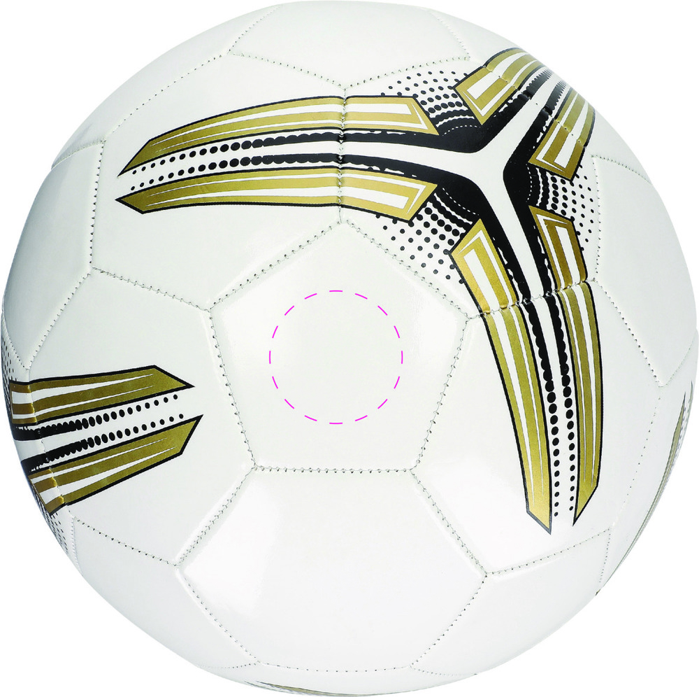 Das perfekte Spielgerät für Torjäger und Ballkünstler. Maschinell genähter Fußball aus PVC in weißer Grundfarbe mit aufgedrucktem Muster in gold und schwarz. Größe 5. Der Ball in Größe 5 ist 3-lagig und hat 32 Panele. Er verfügt über eine Dicke von 1,6 mm, ein Butyl-Ventil und eine Latex-Blase.