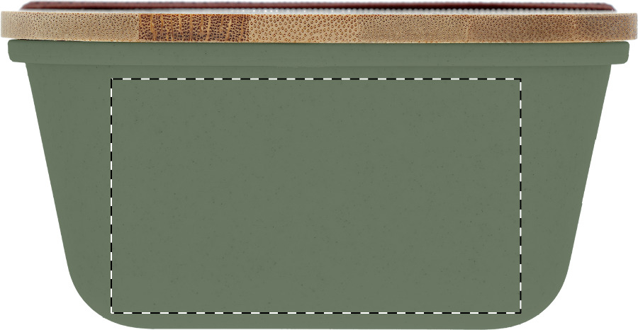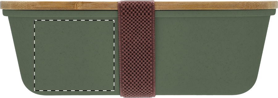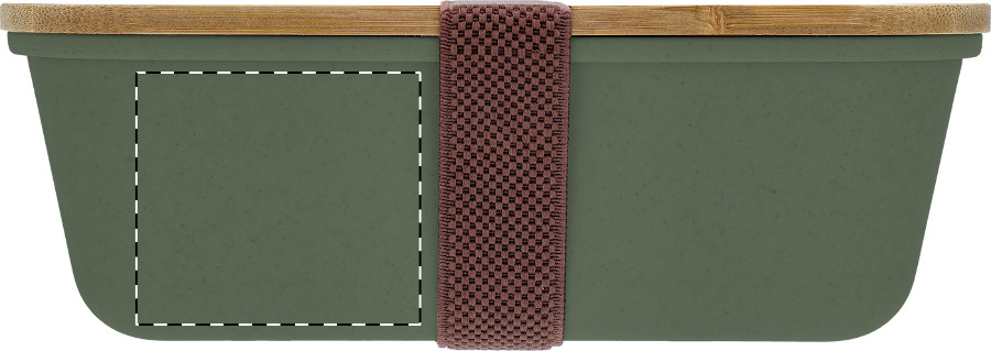 Lunchbox aus PP-Kunststoff mit Bambusdeckel und Elastikband. Füllmenge: 1000 ml.