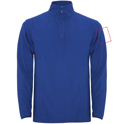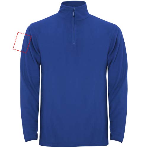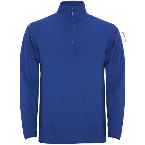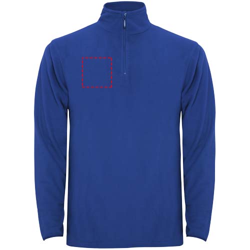 Mikrofleece mit halbem Reißverschluss im Nacken und Kinnschutz. Ärmelbündchen mit passendem Gummizug. Herausnehmbares Etikett. Das Modell ist 190 cm groß und trägt Größe L.