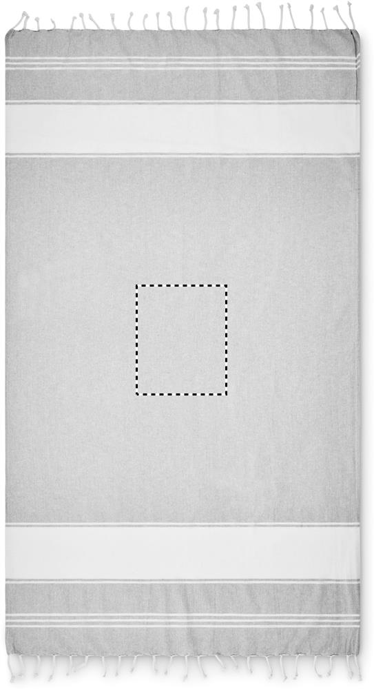 Strandtuch/Hamamtuch mit passender Tasche. 70% Baumwolle und 30% Polyester, 180 g/m².
