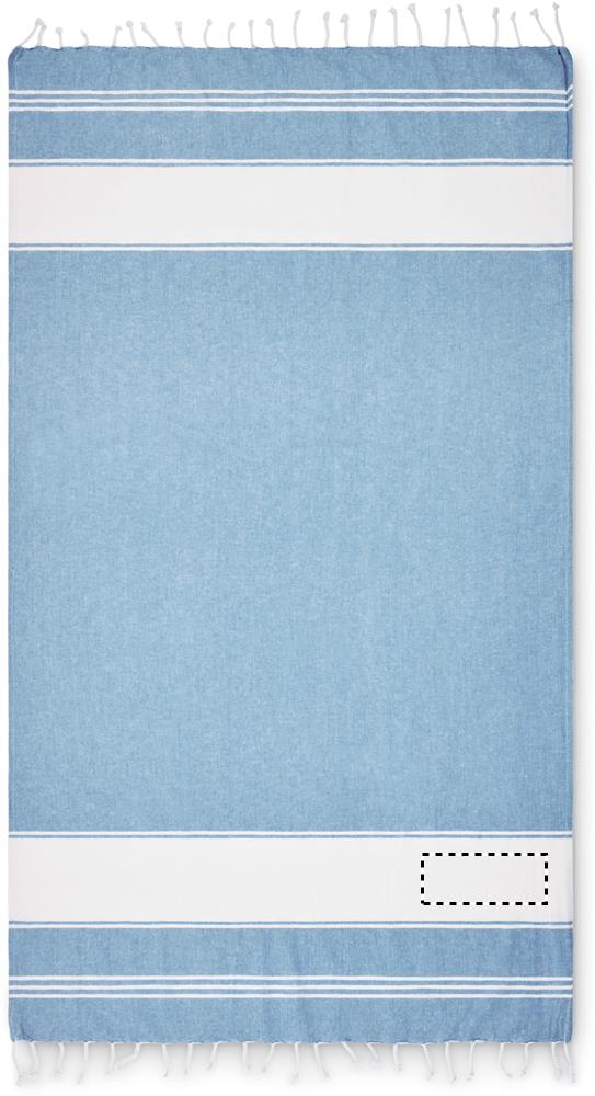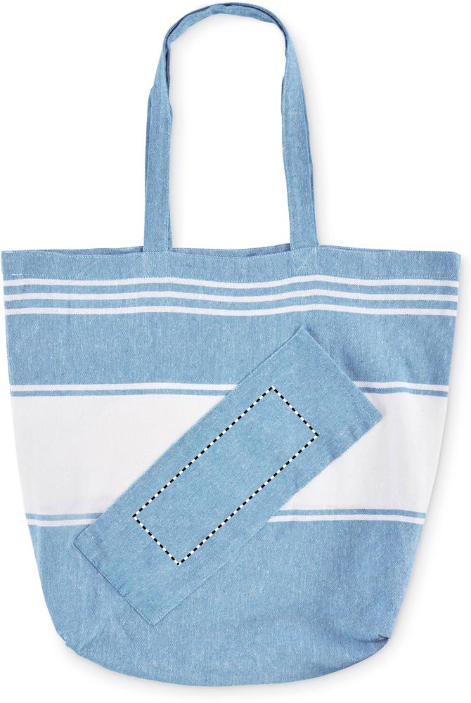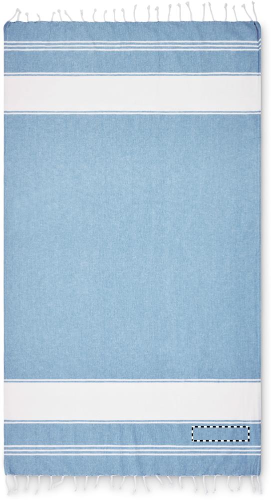Strandtuch/Hamamtuch mit passender Tasche. 70% Baumwolle und 30% Polyester, 180 g/m².