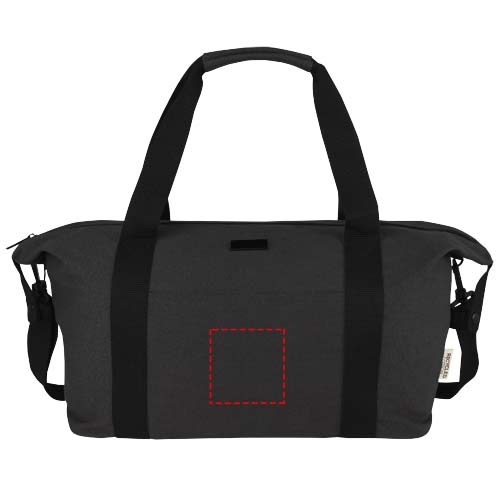 Die Joey Sporttasche mit 25 L besteht aus GRS recyceltem Canvas und GRS RPET-Futter, und verfügt über ein geräumiges Hauptfach mit Reißverschluss und eine Innentasche mit Reißverschluss für eine sichere Aufbewahrung. Sie hat außerdem eine offene Vordertasche und eine weitere Tasche mit Reißverschluss auf der Rückseite für Trolleys. Sie kann entweder an den verstärkten Gurtgriffen oder am abnehmbaren und verstellbaren Schultergurt getragen werden. Die dekorative Metallplatte kann ein Logo durch ihre dezente und matte Oberfläche zum Leuchten bringen.