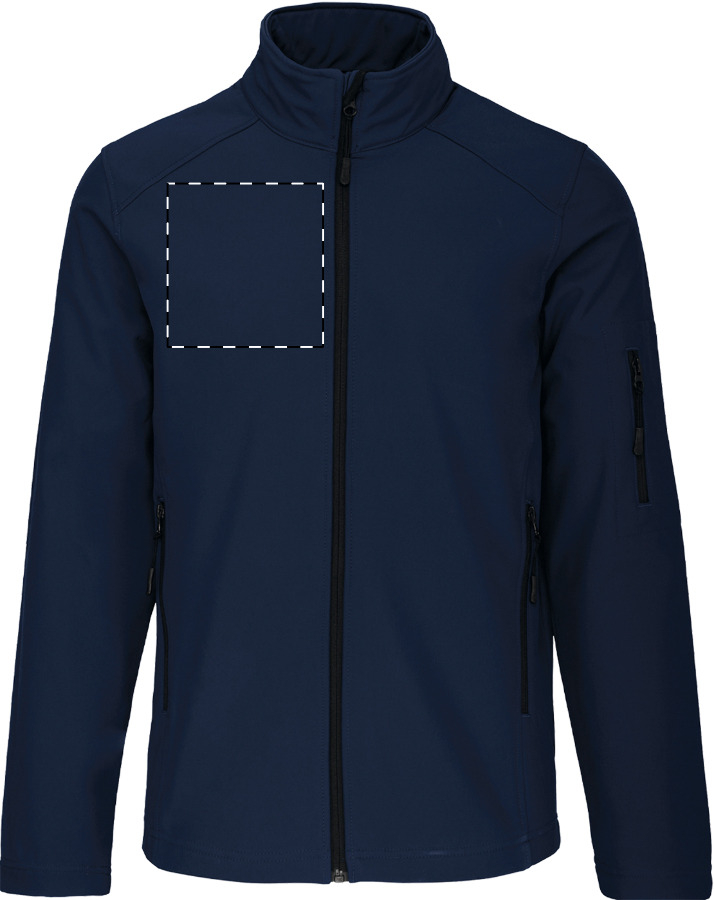 Softshell-Jacke mit Reißverschluss – dreilagig, atmungsaktiv, wind- und wasserdicht – mit Reißverschlusstaschen an Ärmeln und Seiten. Mit atmungsaktiver Zwischenschicht und innenliegendem Micro-Polar-Fleece. 95 % Polyester, 5 % Elasthan, 300 g/m². Marke: Kariban.