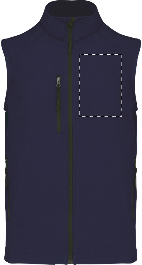 Softshell-Bodywarmer-Weste mit Reißverschluss – dreilagig, atmungsaktiv, wind- und wasserdicht – mit Reißverschluss an Brust- und Seitentaschen. Mit atmungsaktiver Zwischenschicht und innenliegendem Micro-Polar-Fleece. 95 % Polyester, 5 % Elasthan, 300 g/m². Marke: Kariban.