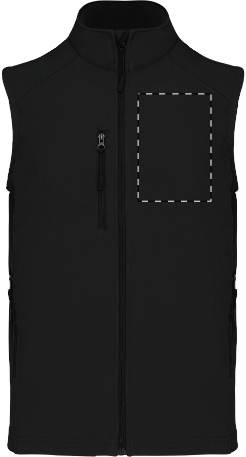 Softshell-Bodywarmer-Weste mit Reißverschluss – dreilagig, atmungsaktiv, wind- und wasserdicht – mit Reißverschluss an Brust- und Seitentaschen. Mit atmungsaktiver Zwischenschicht und innenliegendem Micro-Polar-Fleece. 95 % Polyester, 5 % Elasthan, 300 g/m². Marke: Kariban.