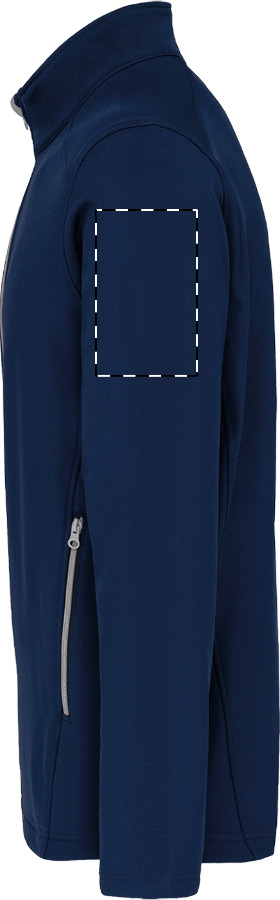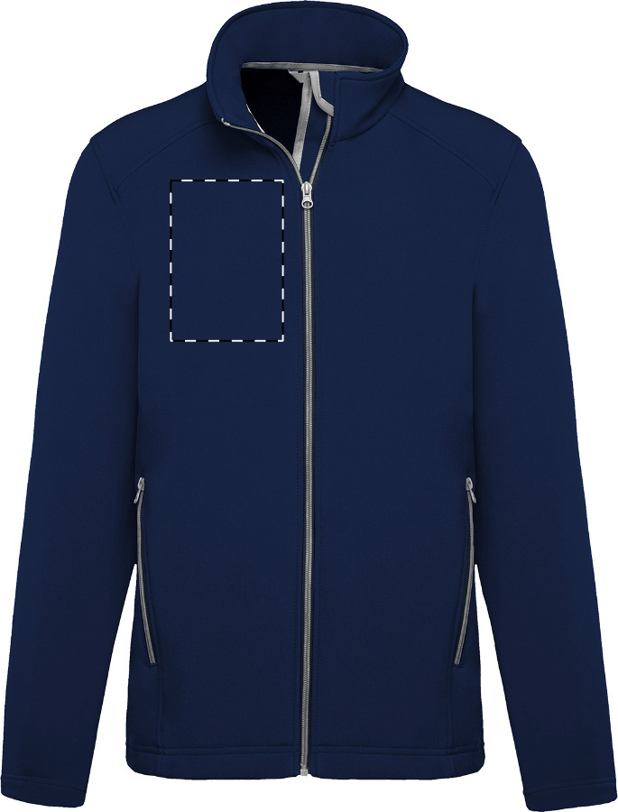 Doppellagige Softshelljacke mit Reißverschluss und seitlichen Reißverschlusstaschen. Mit kontrastfarbenen Reißverschlüssen. Wasserabweisendes Material. Außen: 95 % Polyester und 5 % Elasthan. Innen: 100 % Polyester-Micro-Polarfleece. 300 g/m². Marke: Kariban.