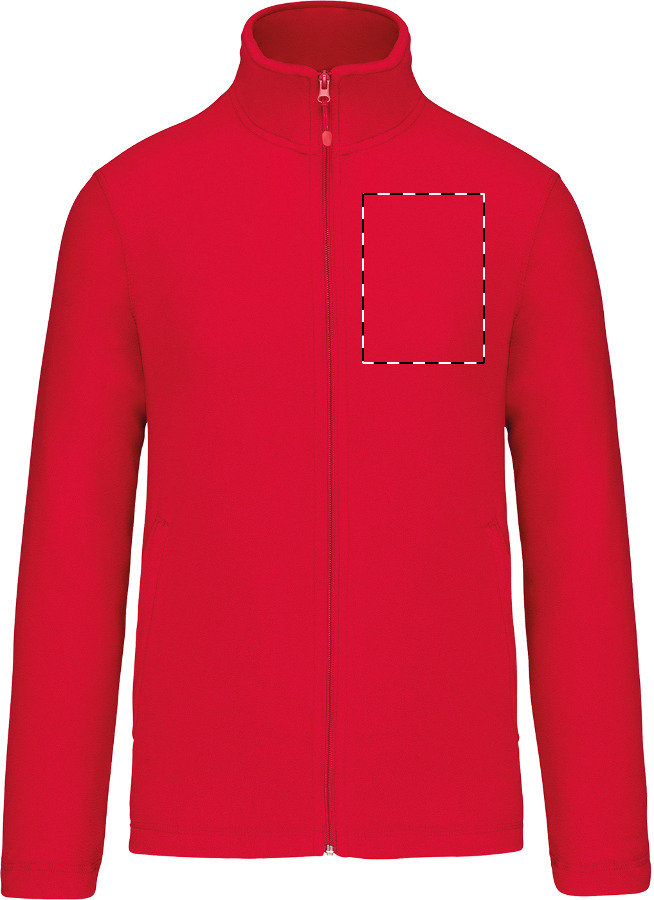 Jacke aus Mikro-Polarfleece mit Reißverschluss und Seitentaschen mit Reißverschluss. Material: 100 % Polyester, 180 g/m². Marke: Kariban.