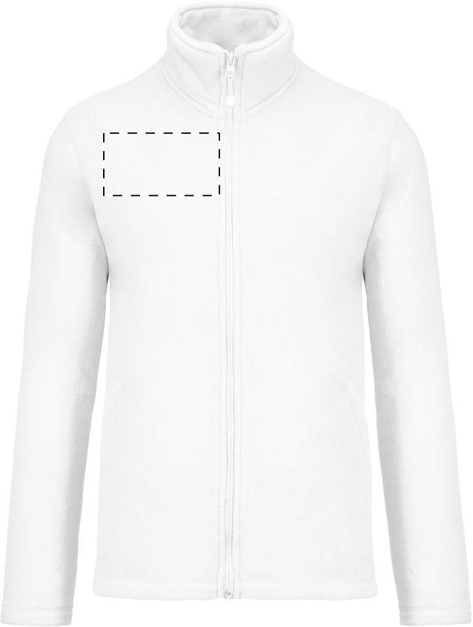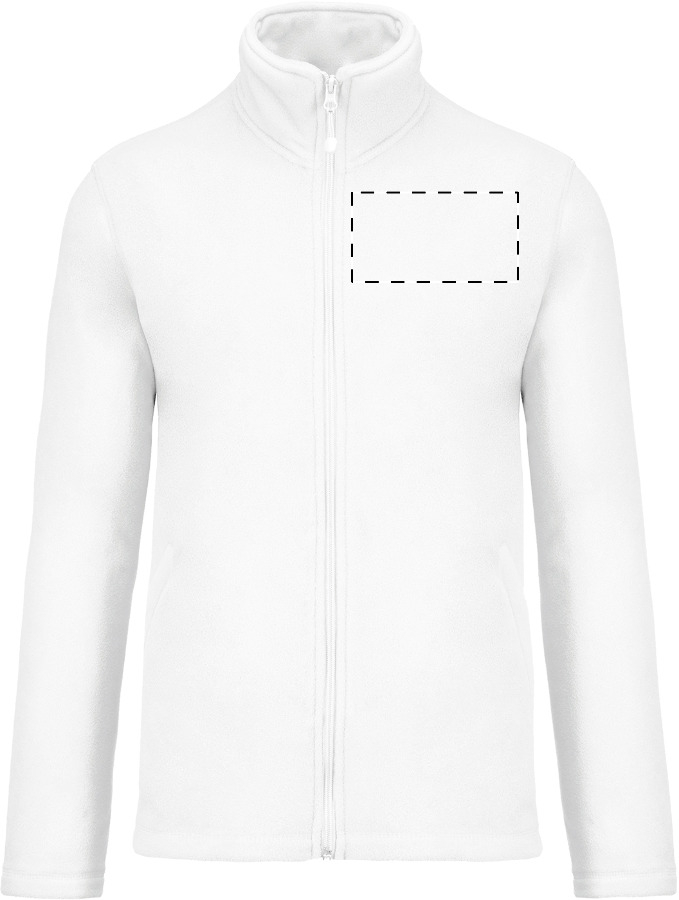 Jacke aus Mikro-Polarfleece mit Reißverschluss, Seitentaschen mit Reißverschluss und Anti-Pilling-Beschichtung. Material: 100 % Polyester, 300 g/m². Marke: Kariban.