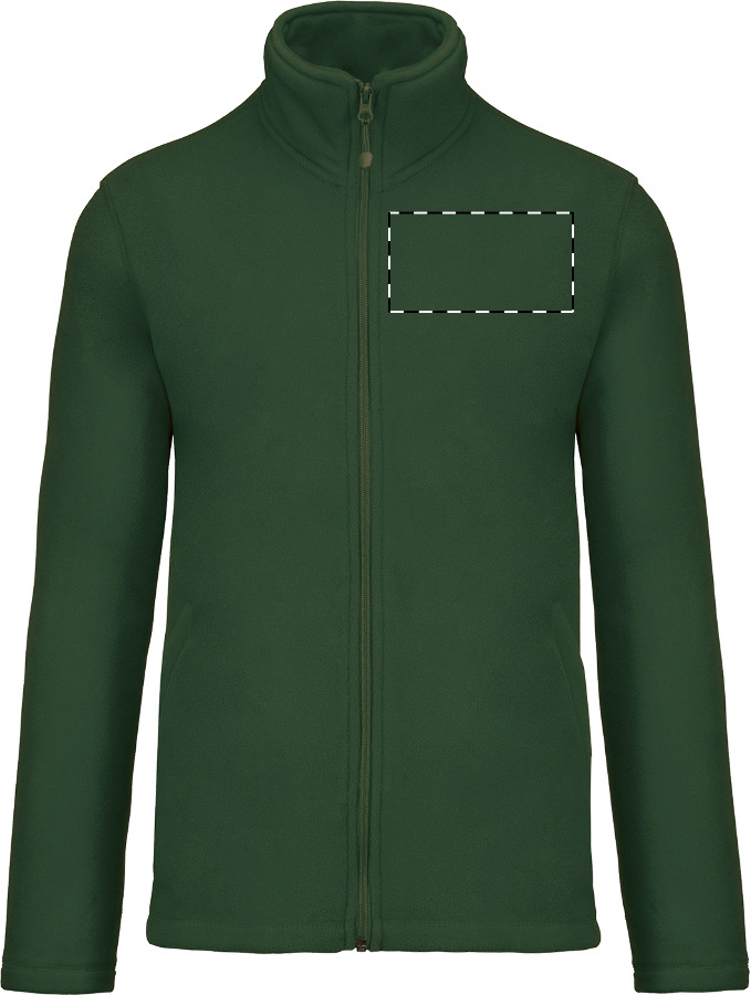 Jacke aus Mikro-Polarfleece mit Reißverschluss, Seitentaschen mit Reißverschluss und Anti-Pilling-Beschichtung. Material: 100 % Polyester, 300 g/m². Marke: Kariban.