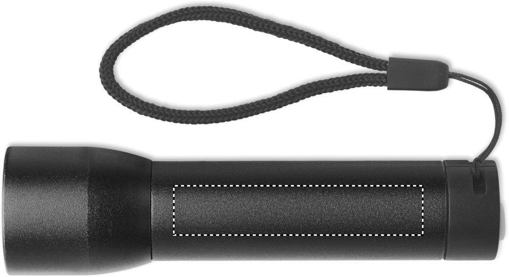 Wiederaufladbare Taschenlampe aus recyceltem Aluminium. Diverse Lichteinstellungen und Zoomfunktion. Inkl. austauschbarer 14500-Lithiumbatterie.