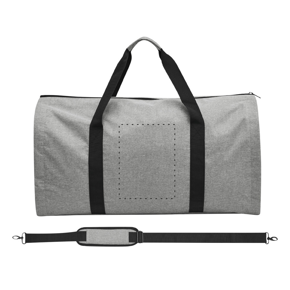 Reisetasche MILANO mit integriertem Kleidersack: 1 Reißverschluss-Hauptfach, 1 Reißverschluss-Seitentasche, 2 verstärkte Tragegriffe, verstell- und abnehmbarer Gurt mit Schulterpolster, Reporterfunktion auf der Rückseite, 4 Reißverschlüsse an den Seiten, um die Tasche vollständig zu öffnen, 1 Metall-Ring zum Aufhängen des Kleidersacks, innen 1 Reißverschluss-Hauptfach mit 3 Gurtbandschlaufen, um Bügel zu befestigen, 2 seitliche Einsteckfächer, 2 kleine Reißverschlussfächer und 1 großes Reißverschlussfach