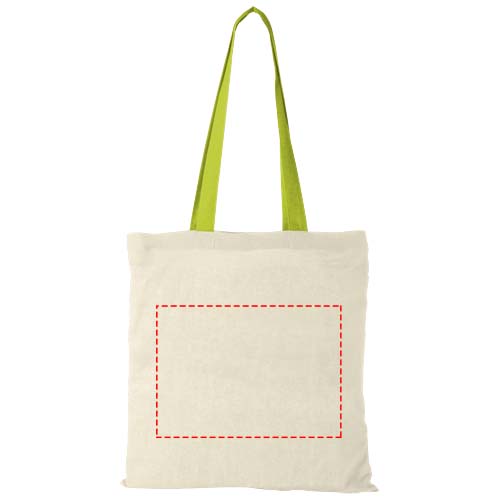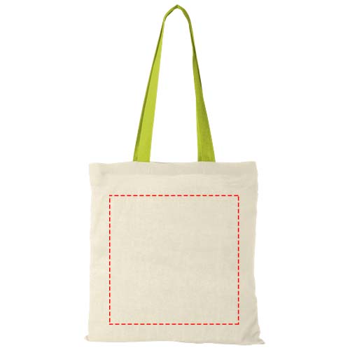 Mit ihren farbenfrohen Tragegriffen setzt diese Tasche auf jeder Veranstaltung, jedem Kongress und jedem Festival einen Farbakzent. Die Nevada Tote Bag aus 100 g/m² Baumwolle ist eine preisgünstige und leichte Tasche mit einem offenen Hauptfach. Mit ihrem Fassungsvermögen von 7 Litern eignet sich diese Tasche perfekt für den Transport von alltäglichen Dingen, vom Telefon und der Geldbörse bis hin zum Lieblingsbuch oder Tablet. Dank der 30 cm langen Griffe lässt sich die Tasche gut tragen. Hergestellt in Indien und OEKO-Tex zertifiziert. Belastbar bis zu 5 kg Gewicht.