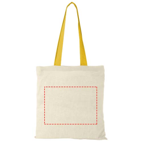 Mit ihren farbenfrohen Tragegriffen setzt diese Tasche auf jeder Veranstaltung, jedem Kongress und jedem Festival einen Farbakzent. Die Nevada Tote Bag aus 100 g/m² Baumwolle ist eine preisgünstige und leichte Tasche mit einem offenen Hauptfach. Mit ihrem Fassungsvermögen von 7 Litern eignet sich diese Tasche perfekt für den Transport von alltäglichen Dingen, vom Telefon und der Geldbörse bis hin zum Lieblingsbuch oder Tablet. Dank der 30 cm langen Griffe lässt sich die Tasche gut tragen. Hergestellt in Indien und OEKO-Tex zertifiziert. Belastbar bis zu 5 kg Gewicht.