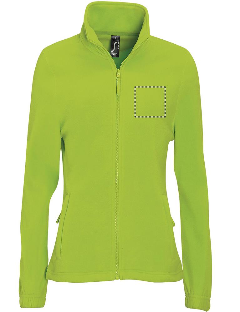 SOL'S NORTH WOMEN, WOMEN'S ZIPPED FLEECE JACKET, 100% Polyester High Density FLEECE 300, Kurzer Schnitt, Antipilling, Verstärkungsband am Hals, Hochgelegter Kragen, 2 Reißverschlusstaschen mit Patte, Taillierter Schnitt, Elastische Ärmelbündchen, Halbmondpasse hinten, Elastischer Kordelzug unten. Zur Größenanpassung beachten Sie bitte die Größentabelle im Abschnitt Produktdokumentation.