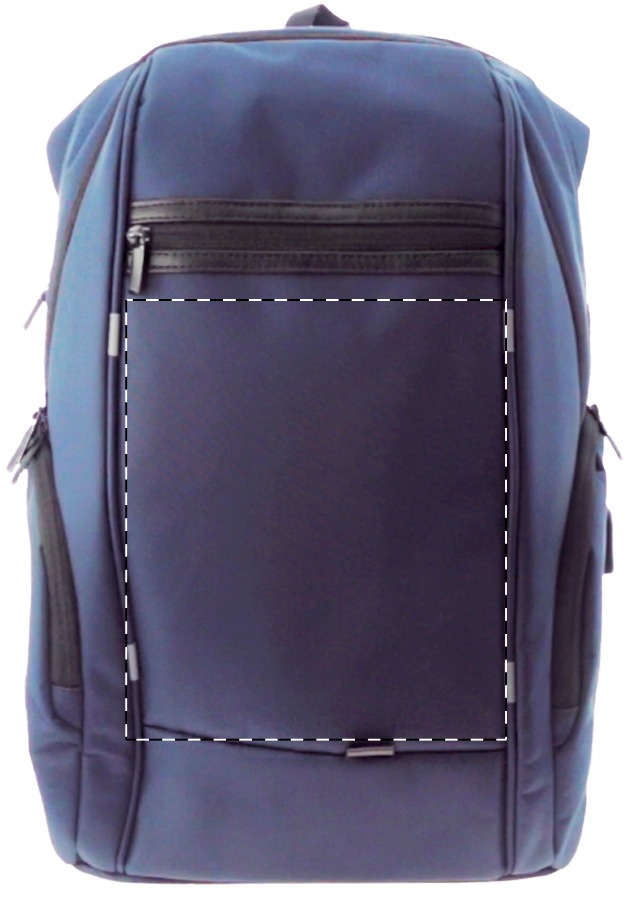 Rucksack aus Nylon, spritzwasserfest, mit mehreren Reißverschlusstaschen. Mit gepolstertem Laptopfach (15"), Rückenpartie und Schultergurten. Mit eingebautem USB-Verbindungsstück für Powerbanks.