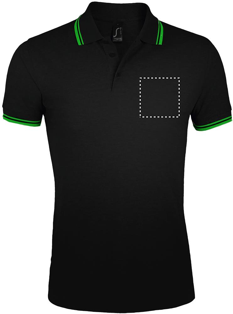 SOL'S PASADENA Herren Polo 200g. Kragen aus Feinripp 1x1. Kontrastierendes Nackenband. Kontrastierend gestreift an Kragen und Armbündchen. Knopfleiste mit 3 farblich abgestimmten Knöpfen. Seitennähte. Fitted cut. Seitenschlitze. Ersatzknopf innen am. Seitenlabel. Material: 100% Baumwolle Ringspun. OEKO-TEX®. Verkauf nur inklusive Werbeanbringung.