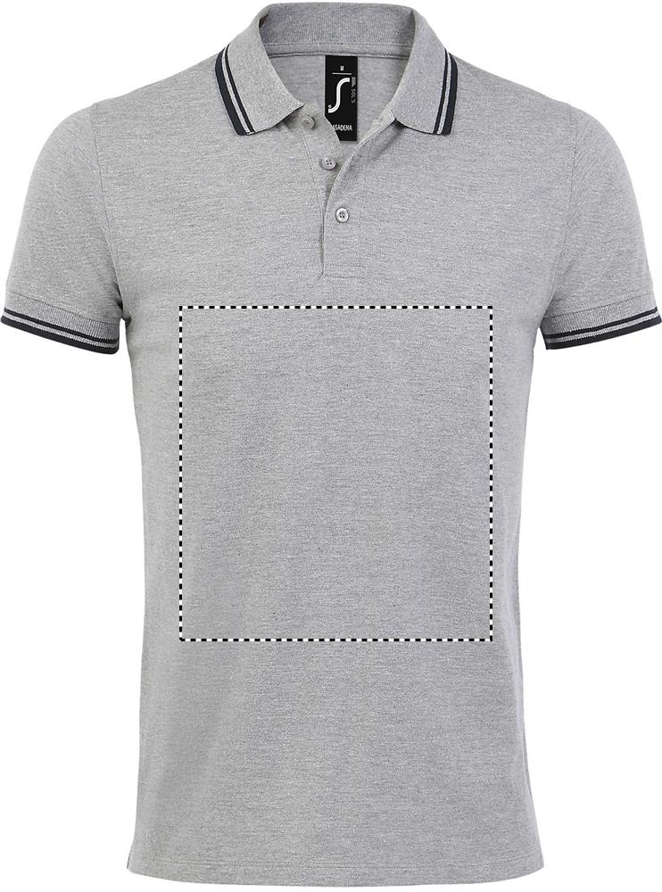 SOL'S PASADENA Herren Polo 200g. Kragen aus Feinripp 1x1. Kontrastierendes Nackenband. Kontrastierend gestreift an Kragen und Armbündchen. Knopfleiste mit 3 farblich abgestimmten Knöpfen. Seitennähte. Fitted cut. Seitenschlitze. Ersatzknopf innen am. Seitenlabel. Material: 100% Baumwolle Ringspun. OEKO-TEX®. Verkauf nur inklusive Werbeanbringung.