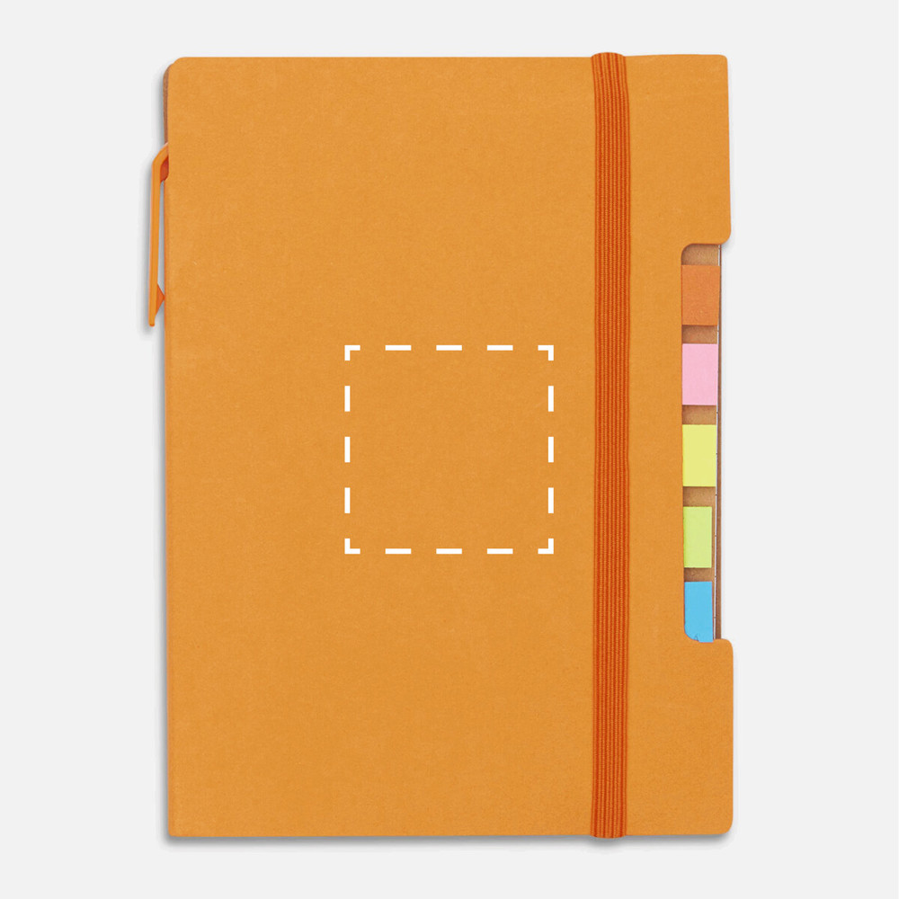 Notizbuch PENZ: 70 Blätter, liniert, 70 g/m², inkl. Kugelschreiber (schwarzschreibend) aus Kunststoff/Pappe, mit 5 verschiedenfarbigen Klebenotizstreifen, Einschubfach für Visitenkarten sowie Gummiband zum Verschließen