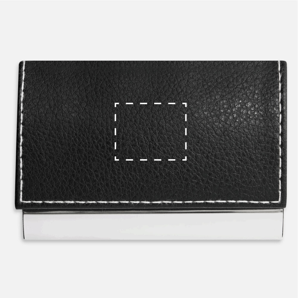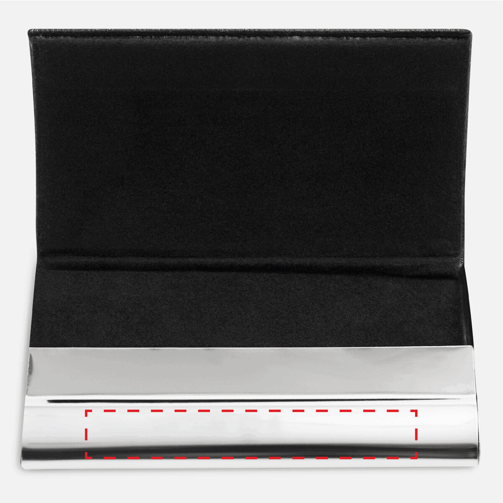 Visitenkartenetui PIET: innen mit samtigem Stoff ausgelegt, um Visitenkarten zu schützen – außen glänzender Boden mit Zinklegierung und Deckel in Echtleder-Optik mit Ziernaht, mit magnetischem Verschluss, in Box