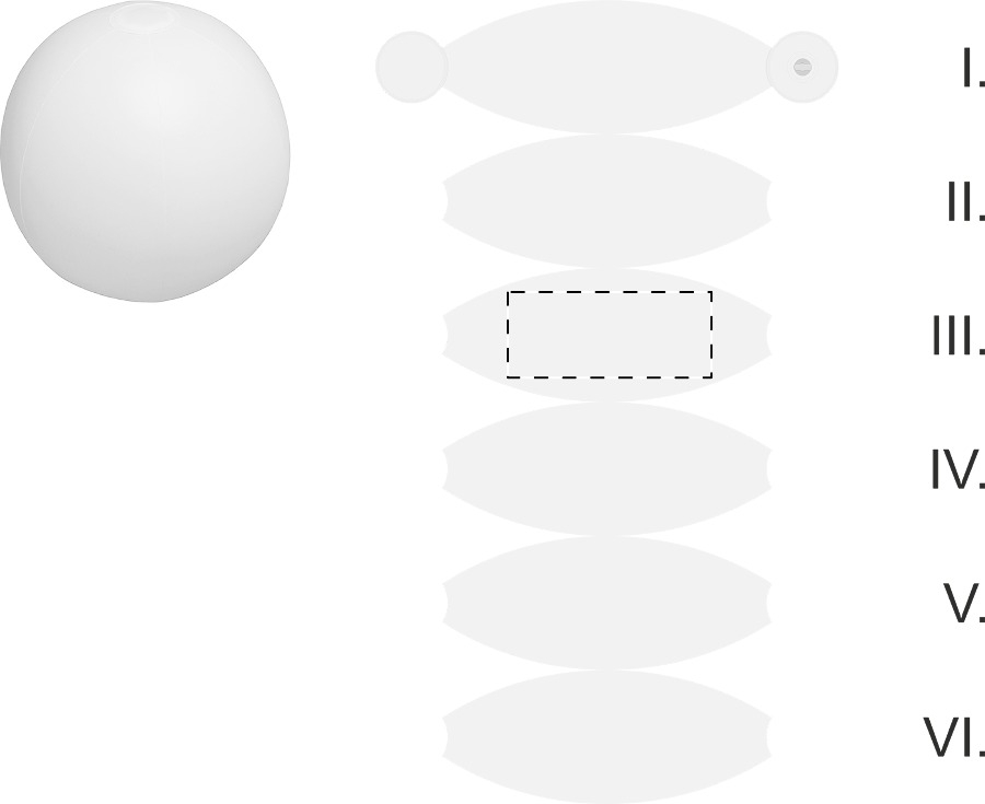 6 Panel Strandball aus PVC, Segmentlänge: 380 mm.